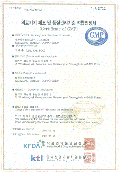 의료기기 제조 및 품질적합 인정서